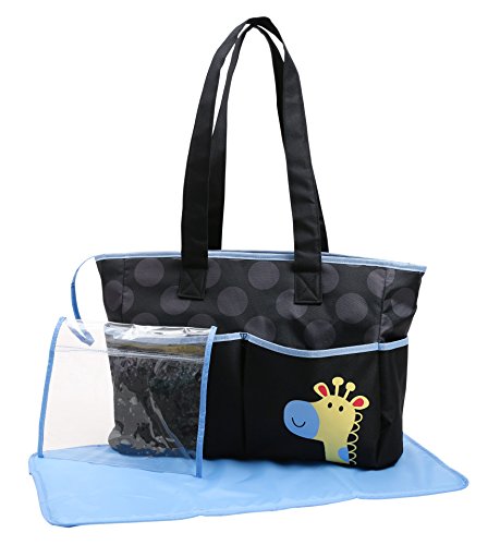 This Diaper bag has an eye catching design and is extremely functional for toting your baby's essentials around. Developed with organization in mind this bag has many pockets here you can keep your baby's bottles, diapers, wipes, and clothing organized and compartmentalized. By storing baby's bottles in the interior, or side bottle pockets, you'll never have to worry your baby's bottle spilling or making a mess. Additionally, there is an accessory pouch inside that's perfect for storing baby's wet clothing. This Diaper Bag features a removable changing pad to match the interior. Double handles makes toting your baby's goods comfortable, convenient, and stylish."Feature