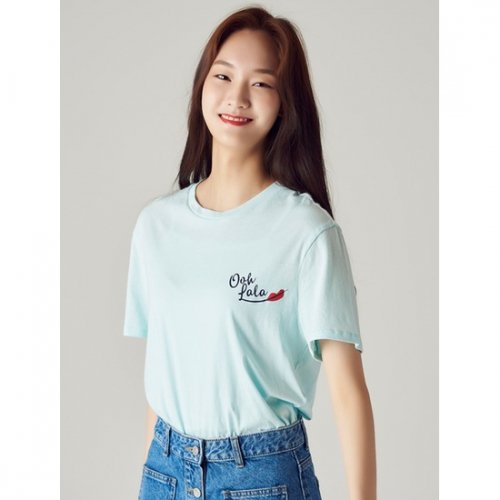 ● 베이직한 디자인에 싱글 우븐 레터링으로 포인트를 준 라운드넥 티셔츠.