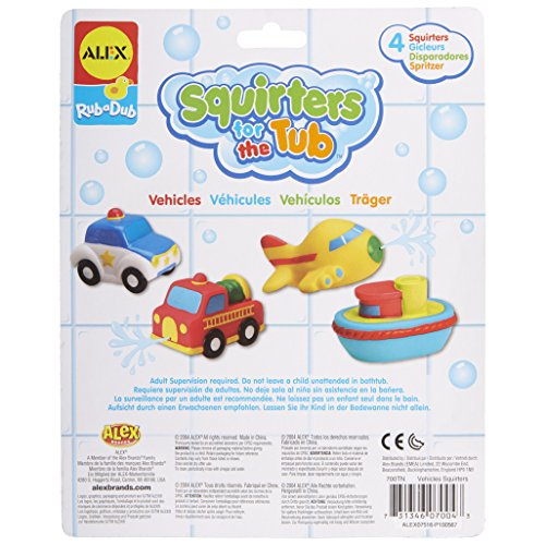 - Includes a police car, fire truck, airplane and boat squirter