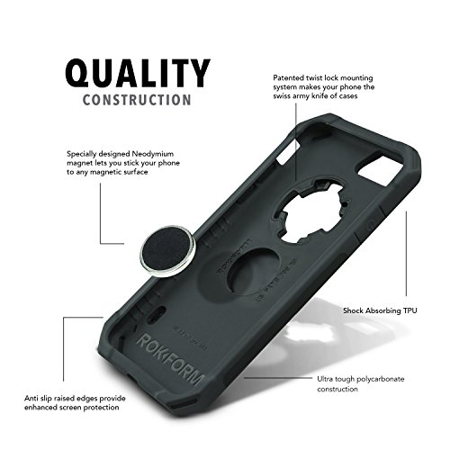 Rokform iPhone 7 Rugged Series Dual Compound Protective Phone Case with Patented twist lock mount and universal magnetic car mount (Black)