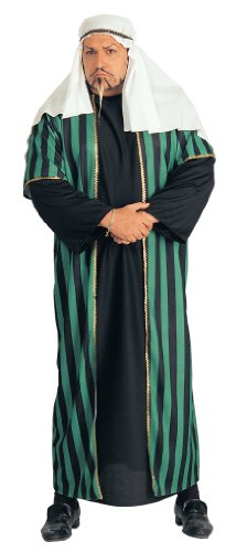 -. Binding : Apparel -. Brand : Rubie's -. Color : Black -. Department : costumes -. Feature : Comes complete with headdress and layered robe / Cool and breezy or warm and cozy - you decide / Why wait for Halloween - also great for stage, kids parties or one-on-one play time year round / Adult plus size fits jacket size 50+ or dress size 21+ / Rubies Costume Company is a family owned business based in New York with more than 60 years of experience bringing children and adults the costumes and accessories they want to Halloween and year-round dress up -. Genre : Historical -. IsAdultProduct : 0 -. Label : Rubies Costumes - Apparel -. Manufacturer : Rubies Costumes - Apparel -. ProductGroup : Apparel -. ProductTypeName : ADULT_COSTUME -. Publisher : Rubies Costumes - Apparel -. Studio : Rubies Costumes - Apparel -. Title : Rubie's Costume Plus-Size Costume Arab Sheik Costume