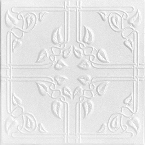 A la Maison Ceilings 8112 Ivy Leaves - Styrofoam Ceiling Tile (Package Of 8 Tiles), Plain White