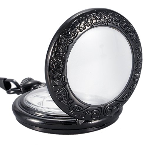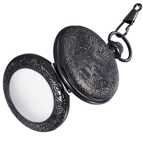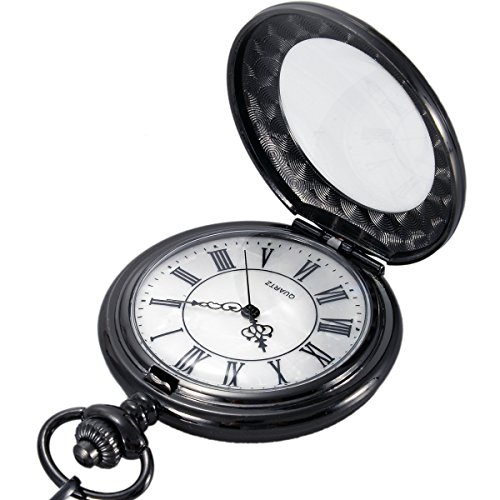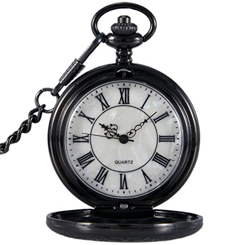 -. Title : SwitchMe Vintage Quartz Pocket Watch Classic Black Roman Numerals Japan Movement with Belt Clip Chain