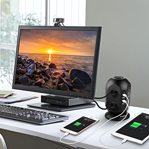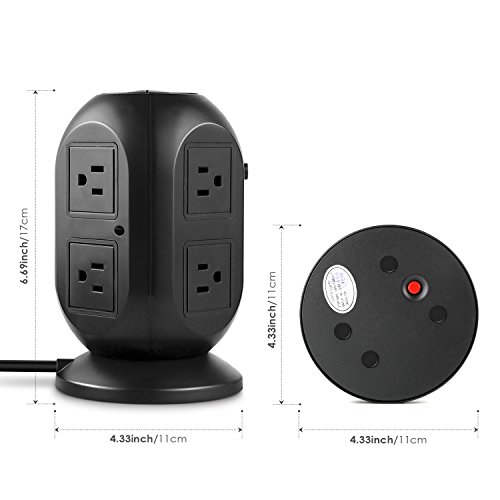 USB POWER STRIP TOWER: The vertical power strip includes 8 outlets and 4 USB ports( two 2.1A and two 1.0A). It takes up a lot less space than traditional power strips and the outlets are spaced far enough apart that all your big plugs fit without crowding.