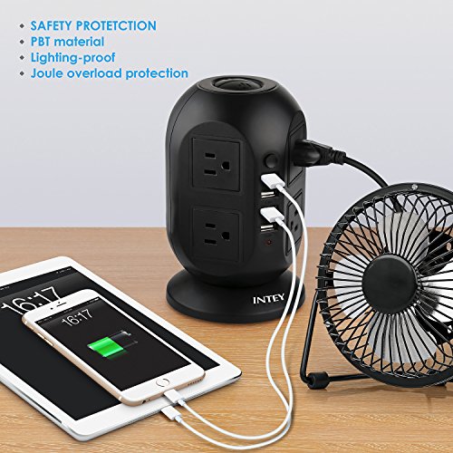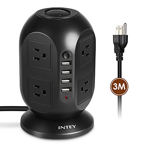 INTEY Power Strip Tower 8 Outlet 4 USB Port Surge Protector Multi Outlet Extension Cord 9.8 Ft
