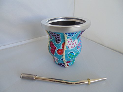 -. Title : BEAUTIFULLY HANDCRAFTED YERBA MATE TEA GLASS GOURD CUP + BOMBILLA STRAW/ MATE DE VIDRIO CON BOMBILLA