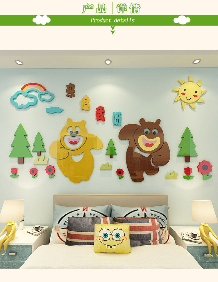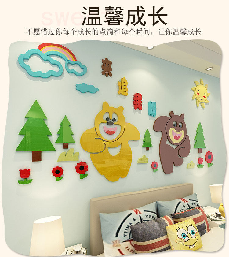 卡通动漫墙贴画儿童房装饰墙贴幼儿园墙面贴纸3d亚克力立体墙贴纸