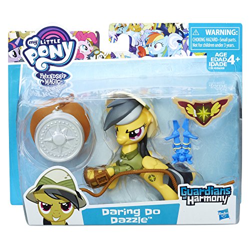 -. Binding : Toy -. Brand : My Little Pony -. EAN : 0630509487462 -. Feature : Inspired by the My Little Pony Friendship is Magic television series / Poseable Daring Do Dazzle figure has 10 points of articulation / Set comes with whip and hat accessories / Figure scale: 3.25 inches / Includes figure and 5 accessories -. Label : Hasbro -. Manufacturer : Hasbro -. Model : C0140AS0 -. MPN : C0140AS0 -. PackageQuantity : 1 -. PartNumber : C0140AS0 -. ProductGroup : Toy -. ProductTypeName : TOYS_AND_GAMES -. Publisher : Hasbro -. ReleaseDate : 2016-07-01 -. Studio : Hasbro -. Title : My Little Pony Guardians of Harmony Daring Do Dazzle Figure -. UPC : 630509487462 -. Warranty : No Warranty