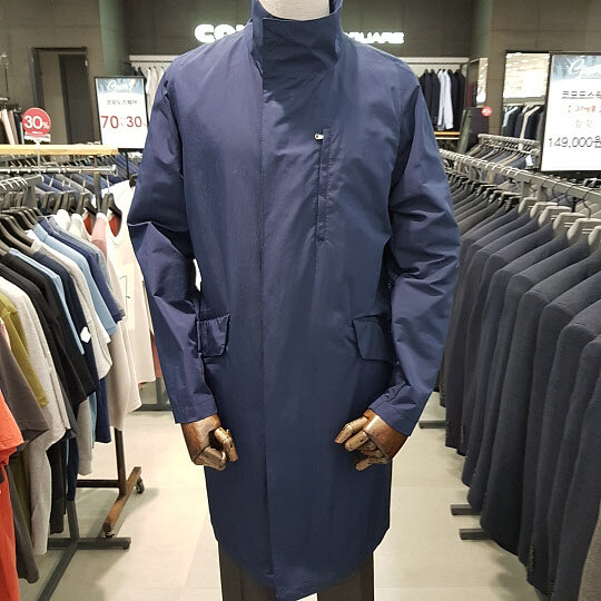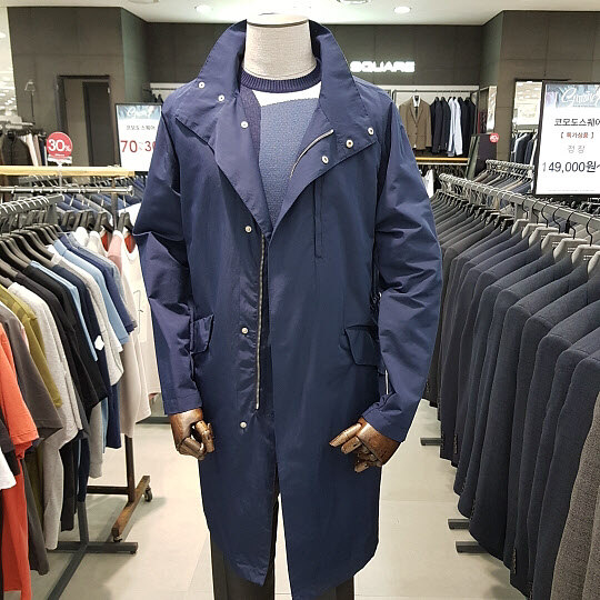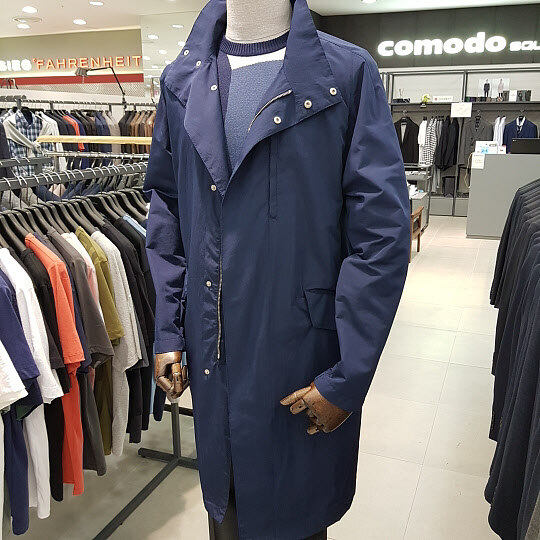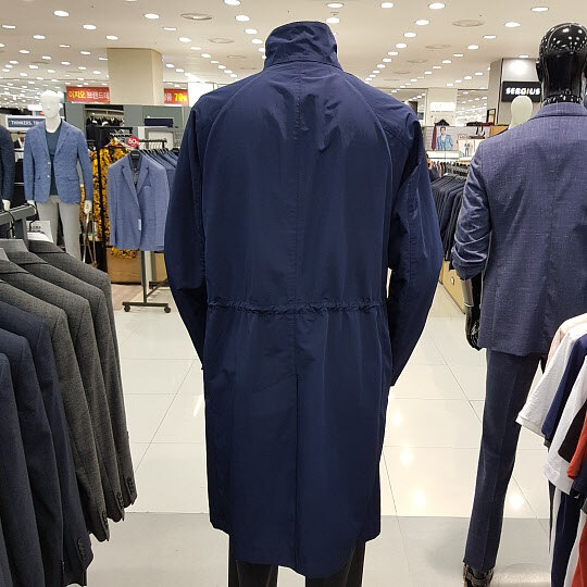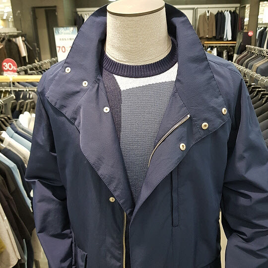 17s/s 네이비 트렌치코트로느낌있는 비즈니스캐주얼 착장에 매우적합한 상품으로가볍고 청바지나슬랙스와함께 멋진 스타일 연출이가능한데일리 아이템 입니다