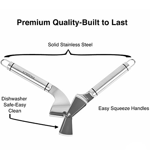 Premium stainless steel. Crafted with durable, food-grade safe stainless steel, our garlic clove press will add a lifetime of functionality to your kitchen cooking sets. It also looks good on the counter, in case you love stylish kitchen décor.