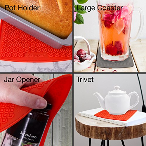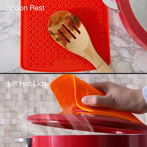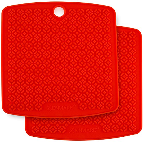 - Package Includes: Zenware Set of 2 Red Multipurpose Silicone Pot Holder Trivet Mat Hot Pads / Dimensions: 6.87” x 6.5”