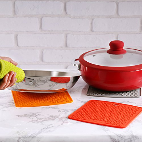- VERSATILE: Silicone’s non-slip grip and flexible features make trivets a multipurpose kitchen tool – Use as a pot holder, large coaster, jar opener, to hold hot lids when cooking, as a spoon rest, placemat, serving mat, for drying dishes, or a hot pad to protect furniture from heat damage or water stains from kitchenware, and more!