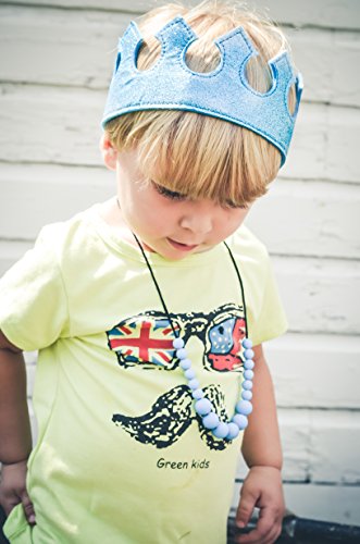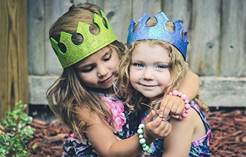 These adorable and comfortable crowns come in a set of three in glittery orange, blue, lime and silver. Let your prince or princess play dress up with friends, use a great photo prop or add to a cake smash outfit. Crown is 3 inches tall. Circumference is 19 inches unstretched and 22 inches stretched.Feature