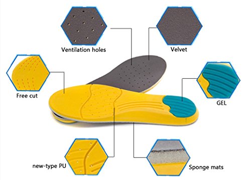 Sport Insoles Cushion Height increase insole Orthotic Plantar Fasciitis Thick Shoe Pads for Women Men, New-type PU, Super comfortable Foot Feeling, Sports...