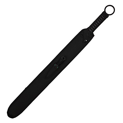 - Feature : 27 inches overall full tang handle / 440 stainless steel 3mm thickness black blade plated Green color edge / include 2 pieces 5 inches throwing knvies / handle wrapped black cord / includes black nylon sheath