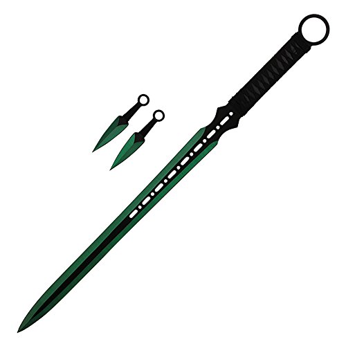- Title : 27" 440 Stainless Steel Full Tang Green Blade Ninja Hunting Machete Sword with 2 Pieces Throwing Knives (Green)