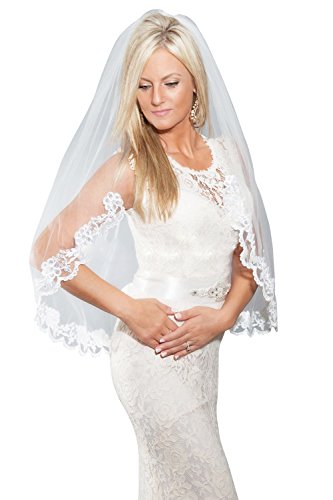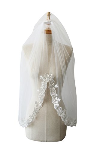 Product DescriptionWhite Ivory high quality hand-made elbow length sequined lace edge tulle bridal veil.It's very perfect for the wedding.Size:Length:100cm/39.3inches, Width:90cm/35.4inches0