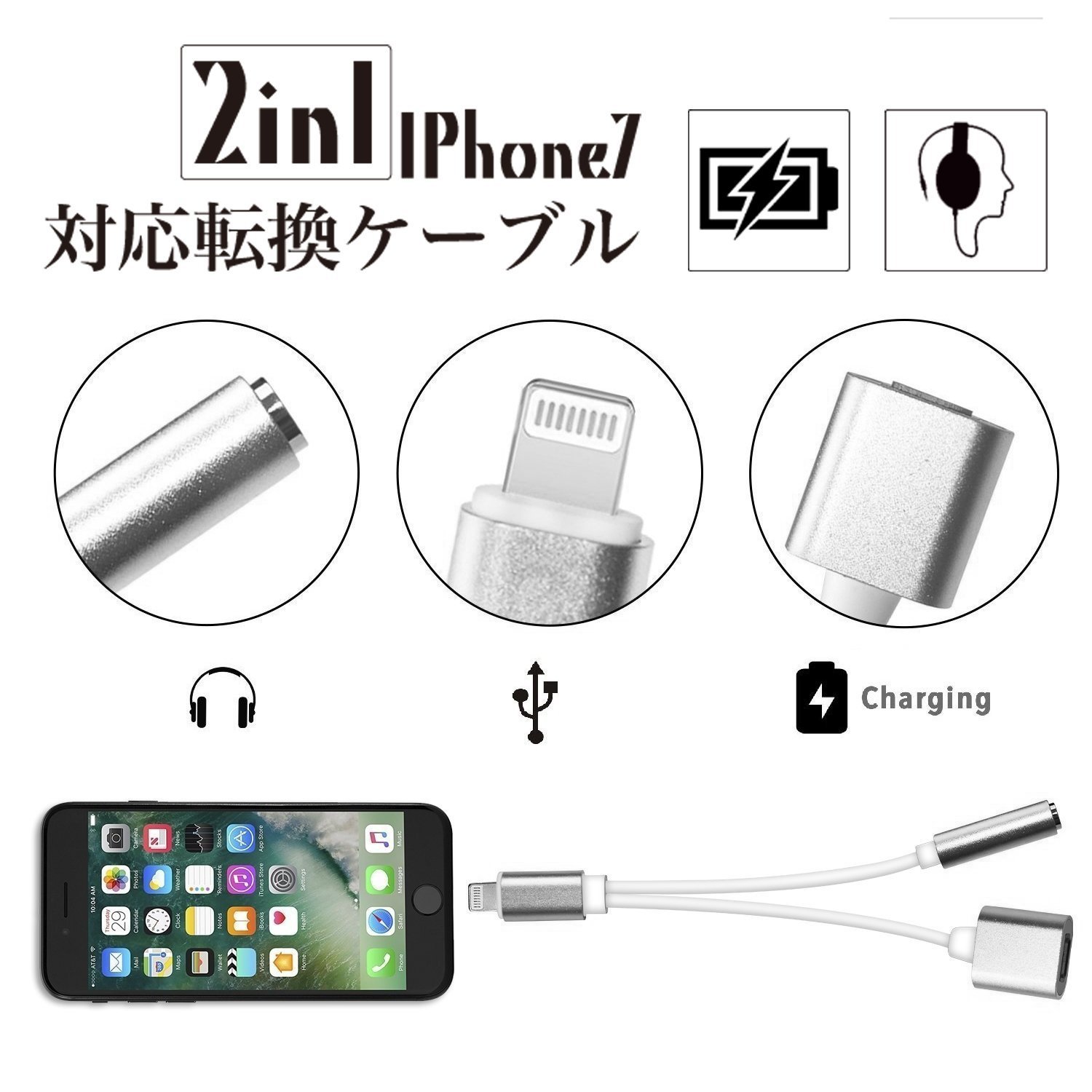 · You can listen to music while charging your device with 2 in 1 iPhone 7/7 Plus Lightning Cable.