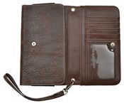 -. Binding : Misc. -. Color : Black -. EAN : 0706634571274 -. Feature : Brown crackled leather phone holder wristlet / Brass, copper and antique silver studs on flap with single-row contrast stitching / One inside compartment with elastic sides to accommodate a smartphone, Protective ID window, 4 card slots, and 2 inside pockets. Zippered pocket on back / Removeable wristlet and crossbody strap measuring approximately 23" / Fits most large smartphones; Measures approximately 7" x 4 1/2" x 1" -. IsAutographed : 0 -. IsMemorabilia : 0 -. Label : 3D -. Manufacturer : 3D -. PackageQuantity : 1 -. ProductGroup : Sports -. ProductTypeName : LAGE -. Publisher : 3D -. Size : Small -. Studio : 3D -. Title : Brown Crackled Leather Wristlet and Smartphone Holder -. UPC : 706634571274