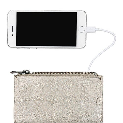 Zip pouch contains removable power bank good for emergency charge of approx. 50%
