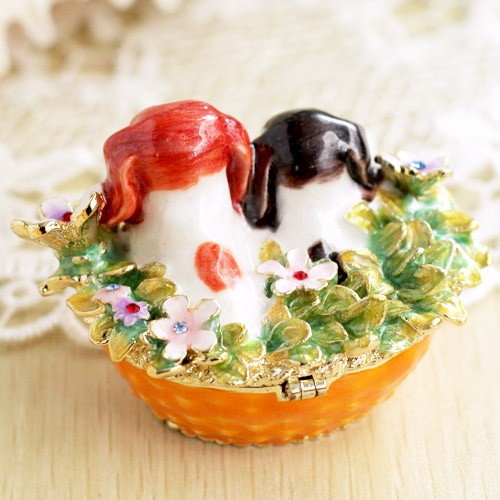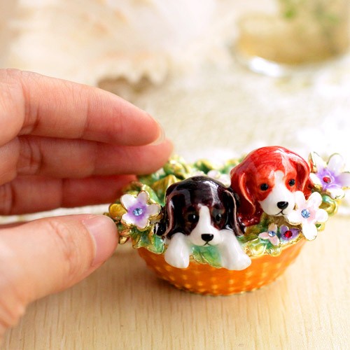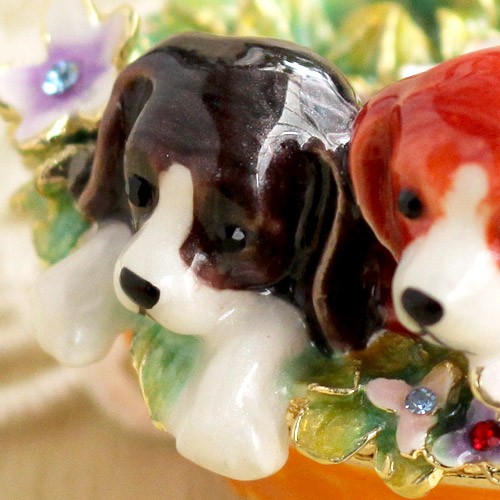 | ジュエリーボックスと言えば、指輪やピアス、ネックレスなどのアクセサリーを入れる引き出し型のケースを思い浮かべる方が多いかもしれません。 ピィアースのジュエリーボックスは、動物や花などをモチーフに作られ、合金製でずっしりとした重さがあります。また高品質のクリスタルガラスを贅沢に使用。まるでジュエリーボックスそのものが宝石のような、高級感溢れる仕上がりです。 小物入れとしても使えるように開閉口には磁石が取り付けてあり、アクセサリーなどなくしやすいアイテムの収納ができます。キラキラと美しく輝く宝石箱は、そのまま飾って楽しめるインテリア雑貨として多くの方に愛されています。 国内トップクラスのジュエリーボックスメーカーであるピィアースは、2004年ごろから本格的に宝石箱の製造を始め、現在のジュエリーボックスはなんと300種類以上。大規模展示会でもご好評いただいており、全国有名百貨店でも販売されています。 自社工場でひとつひとつ丁寧に手作りし、原型作成、研磨、加工、着色、小さなクリスタルガラスの取り付けなども全て手作業で行われるこだわりのハンドメイド品。完成後は厳しい検品の後、丁寧に梱包作業をしお客様にお届けしております。 ピィアース商品は、全国有名百貨店および全国有名宝石店チェーンにてお取り扱いいただいている高品質商品です。 ★自分へのご褒美に…コレクションして並べて飾ると、さらにかわいらしさUP! ★恋人へのプレゼント…中にアクセサリーを入れて、サプライズな贈り物として ★家族への感謝ギフト…お母さんや姉妹へ、日頃のありがとうの気持ちを込めて ★誕生日プレゼント…お友達の喜ぶ顔が見たいから、いつもと違うキラキラギフトを ★小さな女の子へ…まるでお姫様が使っているようなキラキラ宝石箱は女の子の憧れ! |