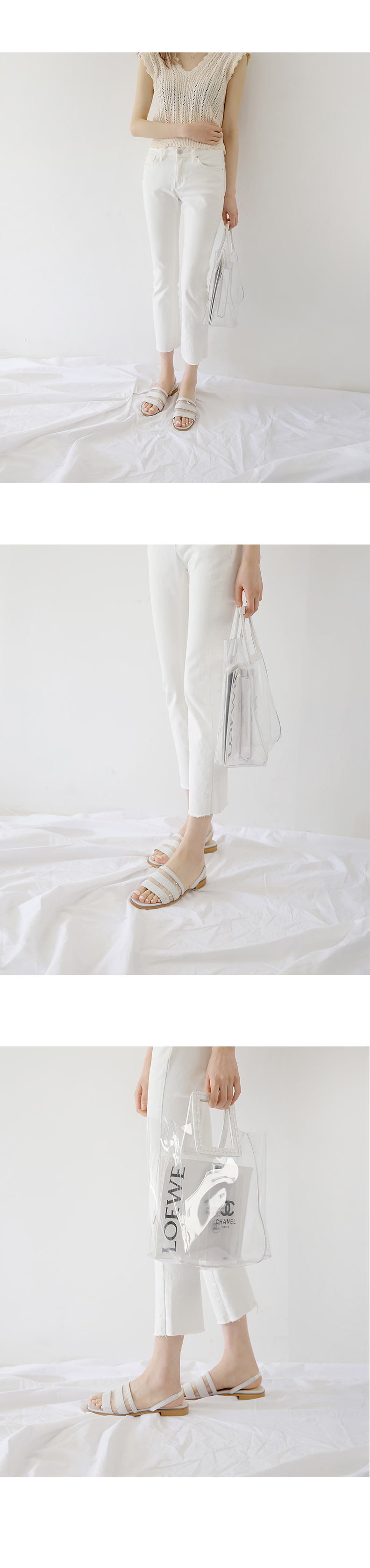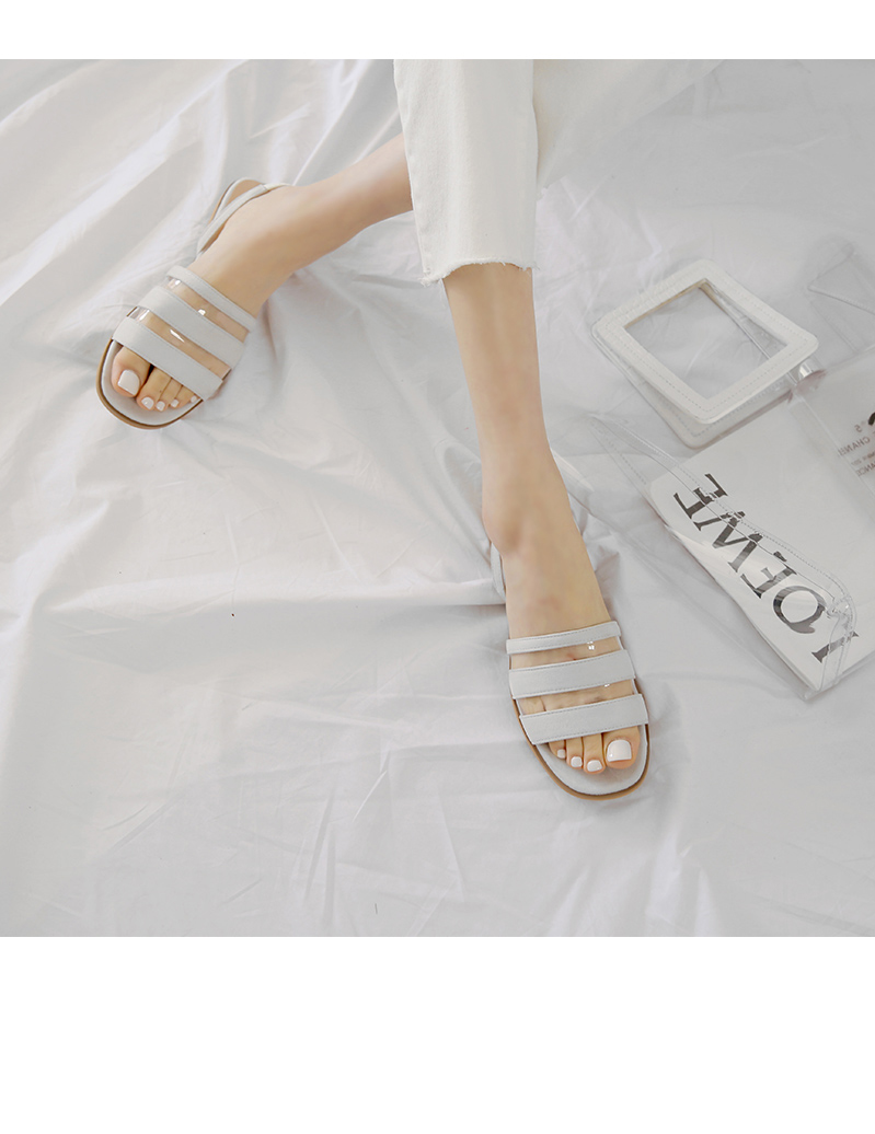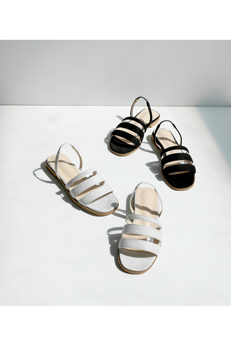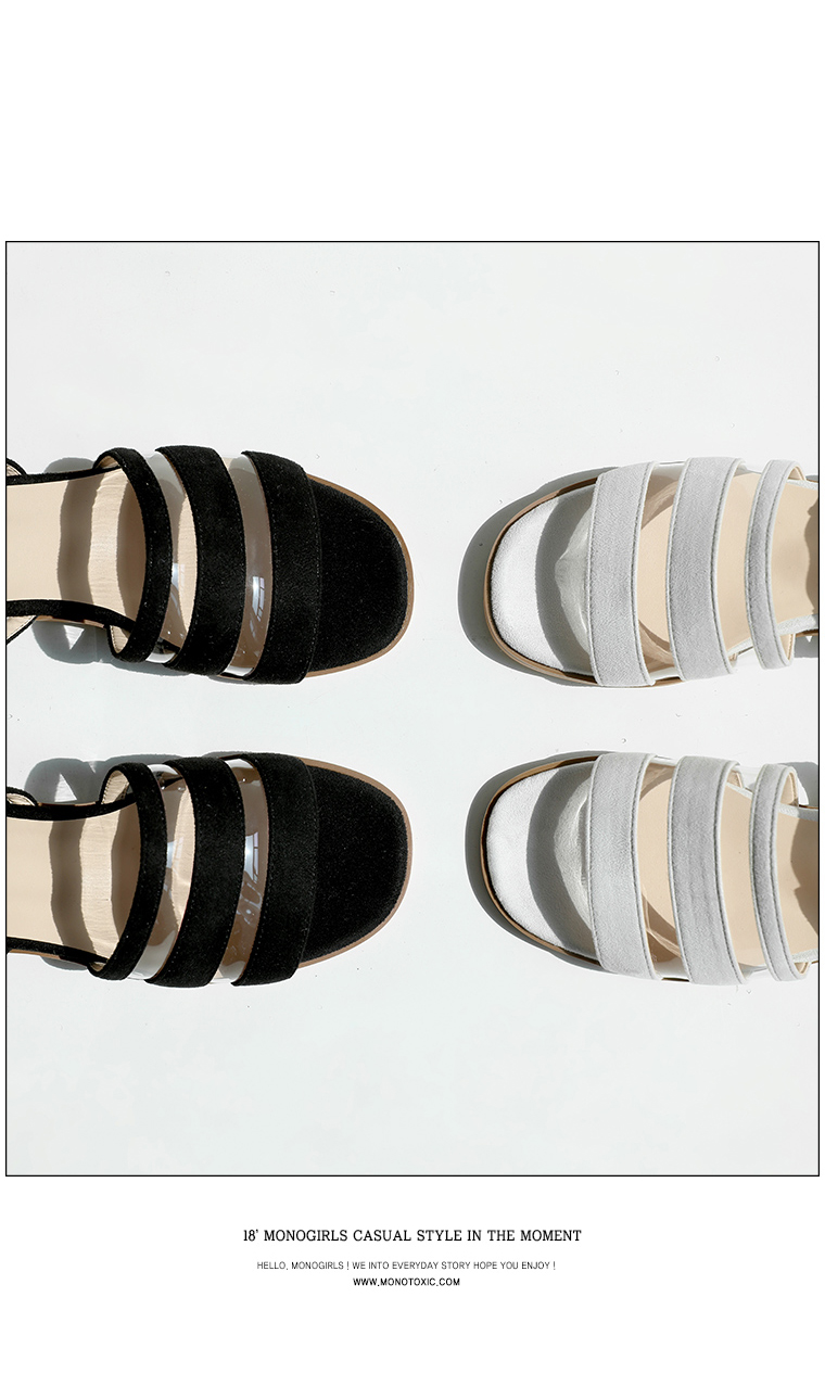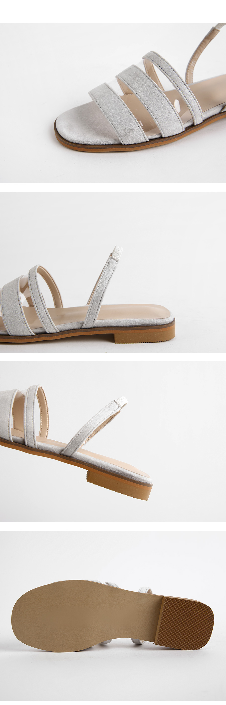 pvc소재와 소프트한 스웨이드 텍스쳐가 더해져 유니크한 디자인이 보여지며 플랫하지만 뒷꿈치 쿠션을 추가하여 착화감을 높여주었습니다.