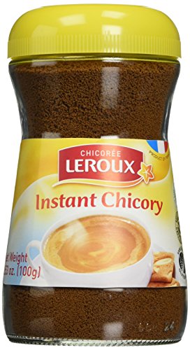 Chicory Leroux instant chicory beverage contains 100% chicory. It is usually prepared with milk or water and is drunk hot or cold and either pure or mixed with coffee. Chicory root is mainly grown in northern France near the towns of Calais, Dunkerque and Saint-Omer.