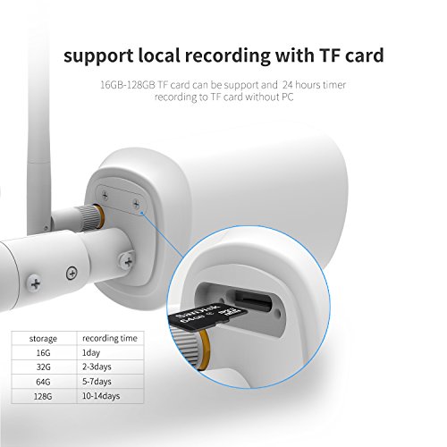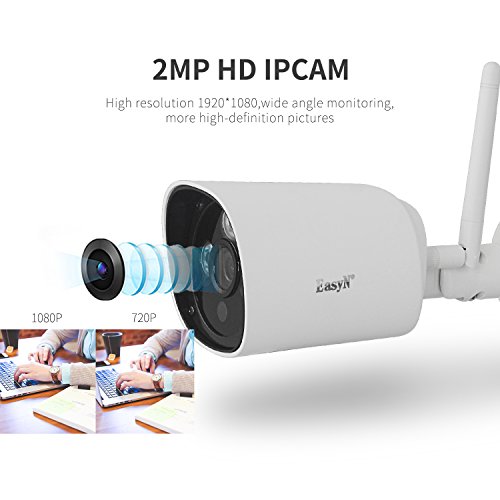 -. Feature : ★PLUG & PLAY & COMPATIBILITY: Connect EasyN camera directly to network router using an Ethernet cable for the first setup, WiFi Configuration makes installation quicker and easier. Support Android or IOS phone, table or windows PC (Except for Mac). Micro SD card (Built-in TF Slot, Max 128 GB supported, SD card is not included) for recording, storing and reviewing. / ★CAPTURE EVERY DETAIL IN BRILLIANT CLARITY: Stunning Full HD 1080P Video at 30fps,Superior Full HD 2 Megapixel Video Resolution, 3.6MM fixed lens, and advanced 3D dynamic noise reduction technology, offer you Seamlessly Stream Video and really Clear and True images. Real time camera or motion activated camera is expert in snapshotting moving objects. / ★OUTLAST THE SEASONS: The EasyN home camera is weatherproof IP65 and built with durable Weather-Tight Technology so that it can work perfectly in extreme temperatures, rainy, windy, or damp climates. You can watch your home anytime from anywhere. / ★EXCELLENT NIGHT VISION: Intelligent IR-Cut switch and Digital Zoom camera provide a stunning clear and high quality vision through 8pcs infrared red light even in complete darkness, night vision up to 50 FT in pitch dark. Easyn camera provides the protection you need and act as a deterrent against crimes like theft, burglaries, and vandalism. / ★WORRY FREE PURCHASE and CHARITY: Backed by a 18-month 100% satisfaction guarantee and 30-Day "Risk-Free" Money-Back Guarantee. With your help, We donate a portion of proceeds to poverty-stricken students. Any concerns,feel free to contact us via support@easyn.com. We will provide service as soon as possible.