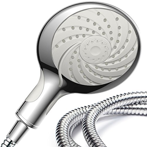 LAGUNA 5-SETTING 6 INCH HAND HELD RAINFALL SPIRAL SHOWER HEAD WITH EXTRA-LONG STRETCHABLE STAINLESS STEEL SHOWER HOSE