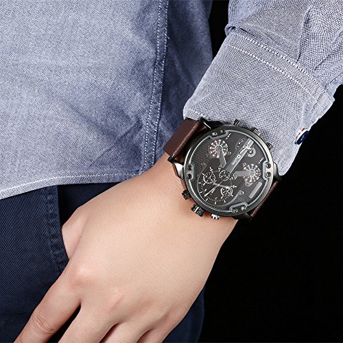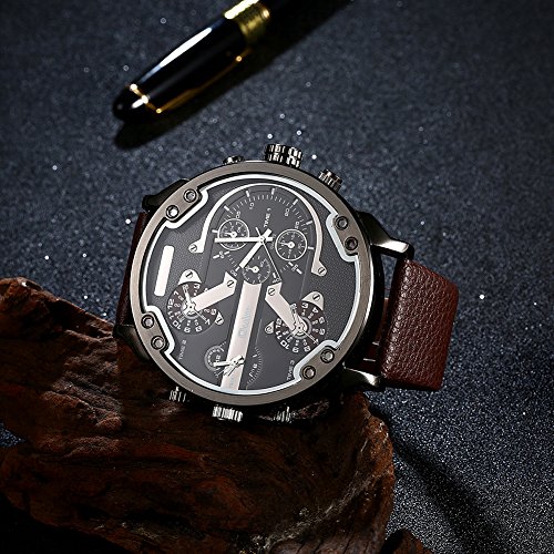 -. Feature : 耐衝撃、耐ひっかき、屈折率の高いサファイヤガラス、重厚なビックフェイスデザインでずっしりとした重量感のある腕時計です / 時計重量:126.5(g) 直径:5.6*5.6(cm) 厚み:15(mm) ケース材料:合金 サファイアガラス / 革バンド仕様:長さ:27.5 mm 幅:20~29 mm バンド色:ブラウン / 見やすい表示、洗練された文字盤が大きくて、視認性抜群のスタンダードメンズウォッチ。精度の高い日本製クオーツムーブメントが正確な時を刻みます。 / ランニング、サイクリング、クライミング、ジョギング、キャンプ、ゴルフなどのような屋外と屋内スポーツに最適です。