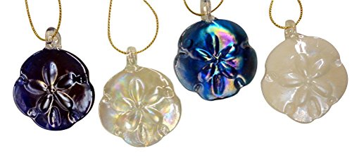 -. Feature : 4 Glass Sand Dollar Hanging Christmas Ornaments / Christmas Ornament or just hanging decor as it is not Christmas specific / Glass / Approximately 1.75 Inches in Diameter