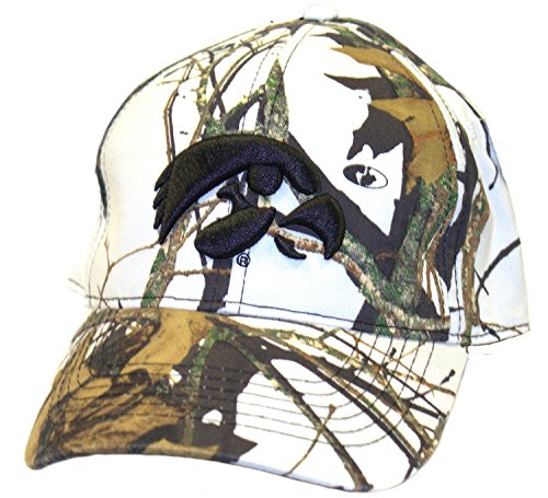 -. Binding : Misc. -. Brand : Bama -. Color : Camo -. Department : mens -. EAN : 0683258860093 -. Feature : Officially Licensed by the National Collegiate Athletic Association (NCAA) / Team Logo Camo Style Ball Cap / Raised Embroidered logo on the crown / Velcro Straps for a one size fits most / Makes the Perfect Gift of Self Purchase! -. Label : NCAA -. Manufacturer : NCAA -. PackageQuantity : 1 -. ProductGroup : Sports -. ProductTypeName : SPORTING_GOODS -. Publisher : NCAA -. Size : One Size -. Studio : NCAA -. Title : NCAA Licensed Iowa Hawkeyes White Mossy Oak Camo Baseball Hat Cap -. UPC : 683258860093