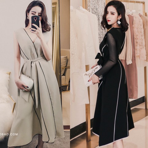ワンピース ドレス ミモレ丈 ノースリーブワンピース ハイウエスト Vネック シック お呼ばれコーデ パーティー drgz1495