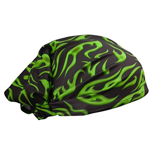 -. Title : Green Black Flames Schampa Doo - Z Multi Wear Use Headwrap Headscarf Durag Face Mask Scrunchie