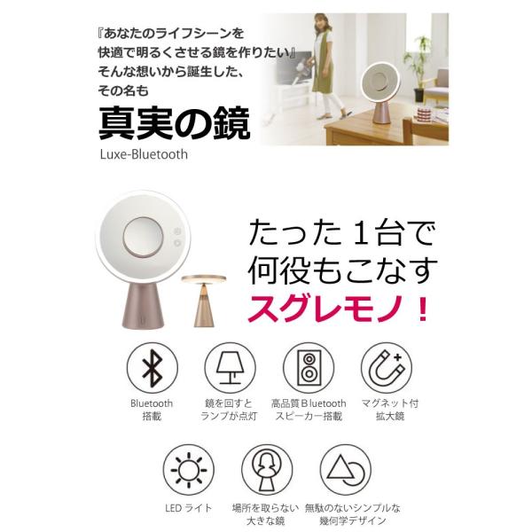 真実の鏡 Luxe Bluetooth 卓上ミラー LED付き