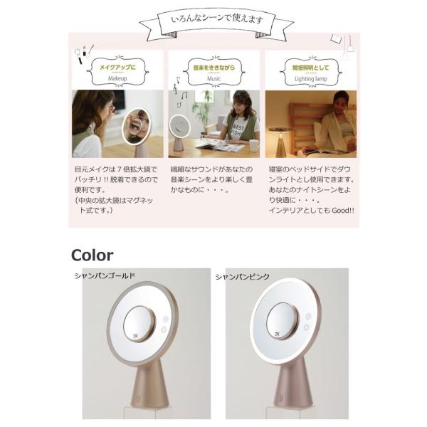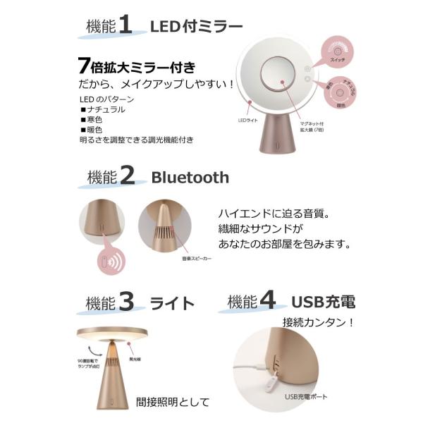 1台3役であなたのライフスタイルをもっと快適に! 真実の鏡 Luxe Bluetooth 卓上ミラー LED付き 鏡 拡大鏡 スピーカー 照明 メイク 化粧 EC017LXUSB-7X 送料無料