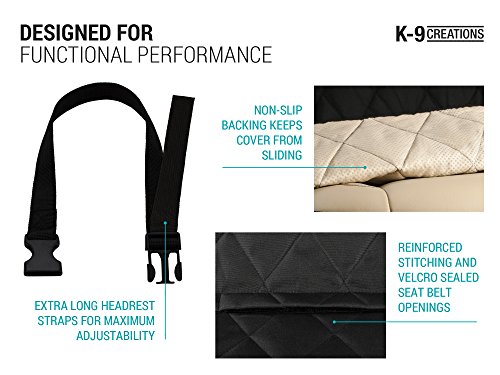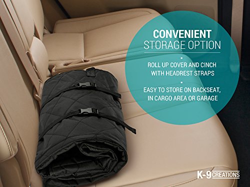 -. Feature : Sizes based upon key vehicle dimensions provide best fit to actual vehicles sold in the US. No more "will it fit my car?" / Unique design features and sturdy construction ensure continuous protection of your fine cloth or leather seats / Headrest straps allow headrests to be positioned in the full down position maximizing visibility out back windows / The cover can be folded, rolled and cinched using head rest straps for easy, compact storage / Fabric polyurethane coated to be waterproof; silicone nonslip backing; pet-friendly texture for secure footing