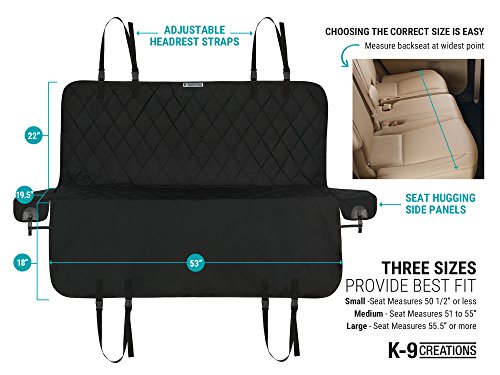 -. Title : Pet Dog Car Seat Cover for Back Seats~Three Sizes to Neatly Fit Cars, Trucks & SUVs, Exclusive Seat-Hing Side Flaps, Extra Strong Construction Details, Hammock Style