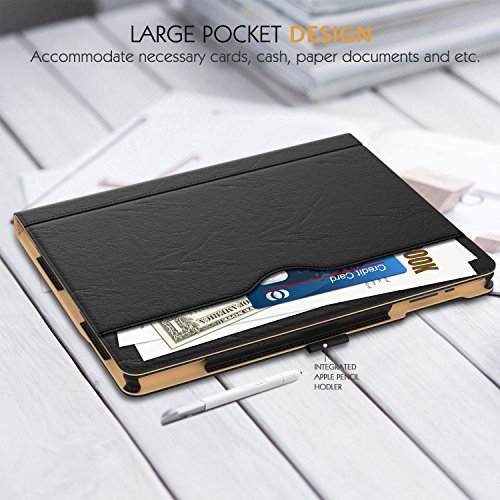 It comes with a side pocket that can store other accessories such as cashes, credit cards, bank cards, and cables and so on. Built-in an Apple Pencil loop which is much more conveninet for your pencil while on the go.
