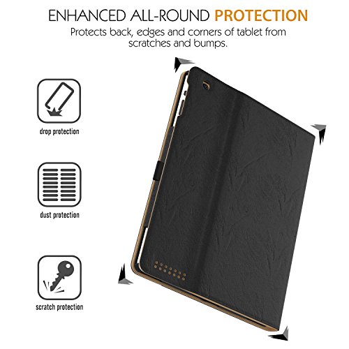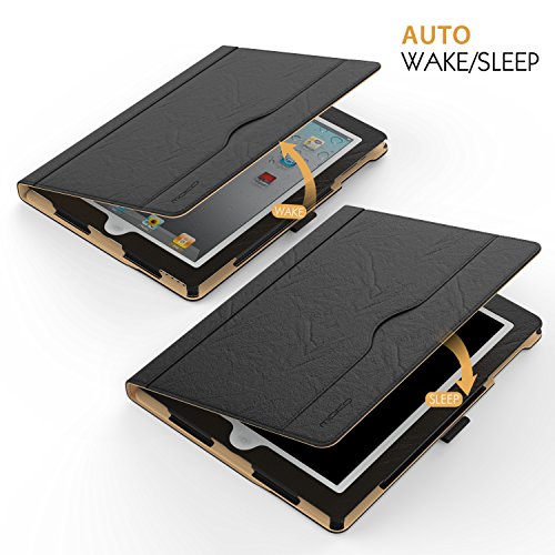 Case for iPad 2 / 3 / 4 - MoKo Slim Folding Stand Folio Cover Case for Apple iPad 2 / The NEW iPad 3 (3rd Gen) / iPad 4 with Auto Wake / Sleep and Document Card Slots, Multiple Viewing Angles, BLACK