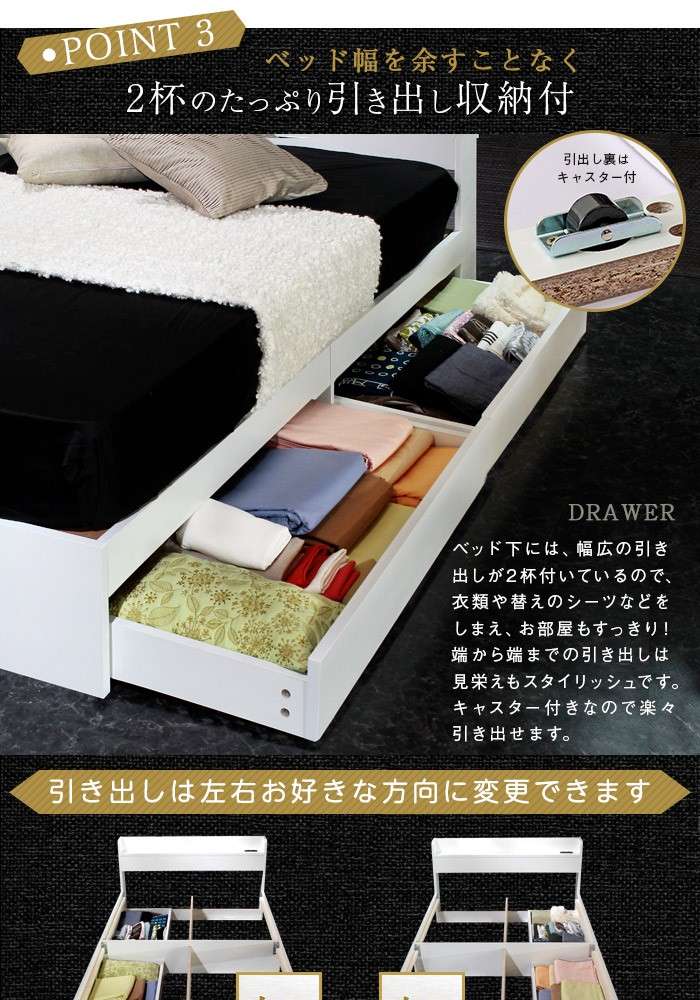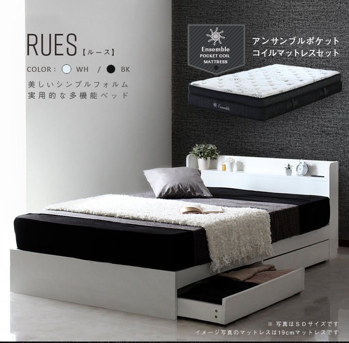 ●人気の多機能ベッドフレーム白黒ルースフレームに、ワンランク上の寝心地マットレスのセットです