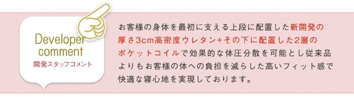 ●2層のポケットコイルで1層にはできない独特な反発が身体を支え心地良い睡眠へ導きます