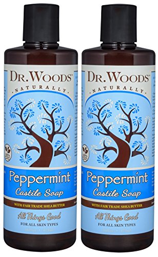 Contains Two (2) bottles of Dr. Woods Peppermint Castile Soap with Organic Shea Butter 32 oz