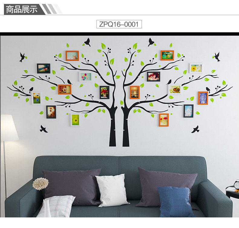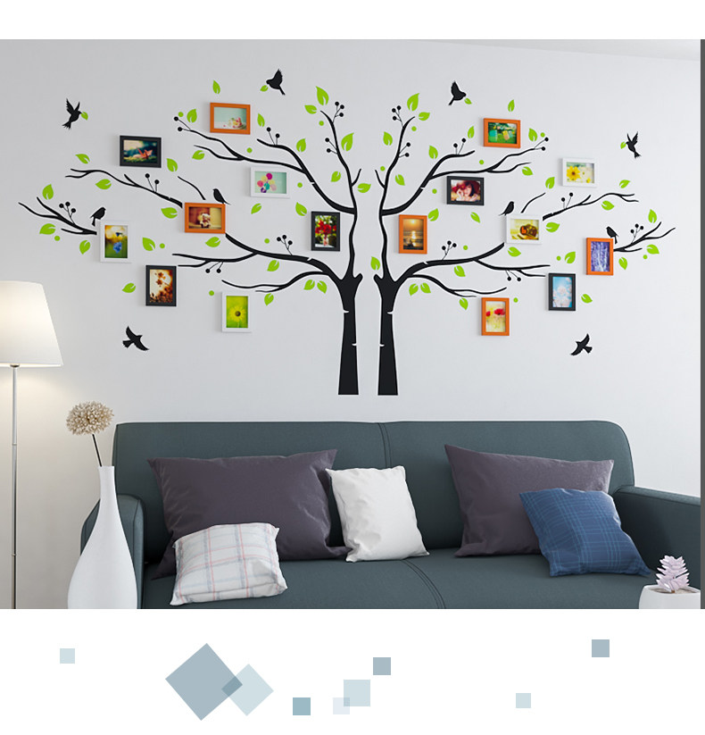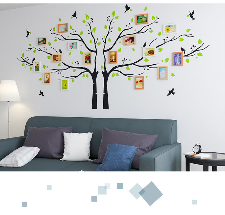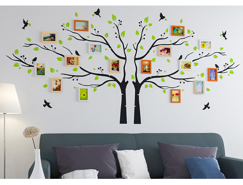 客厅房间墙壁装饰相框画挂墙创意简约清新员工风彩大树组合照片墙