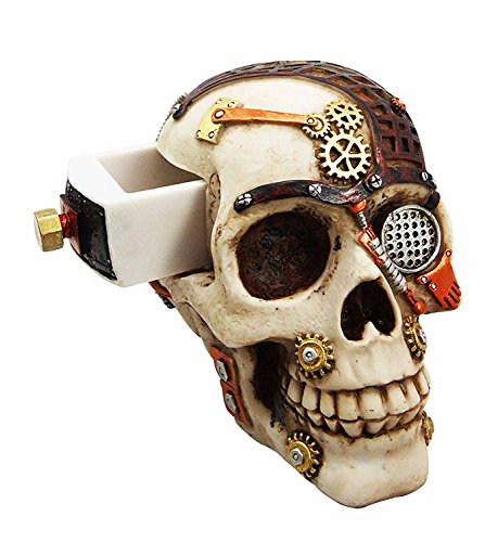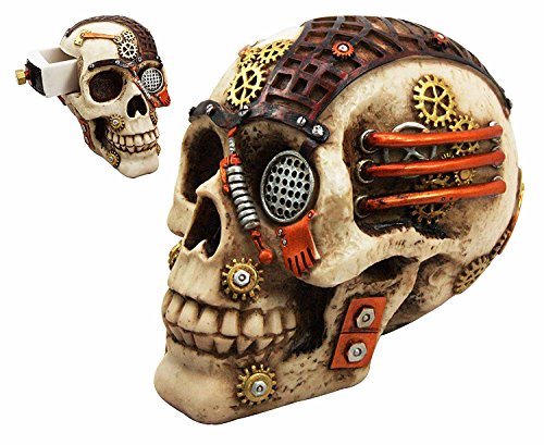 This skull steampunk box stands at 5" tall, 6.25" long and 4.5" wide approximately.