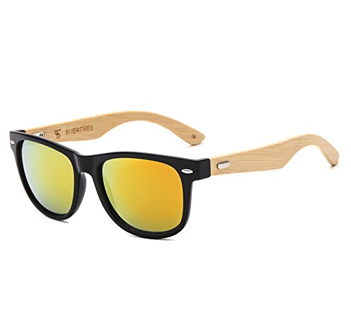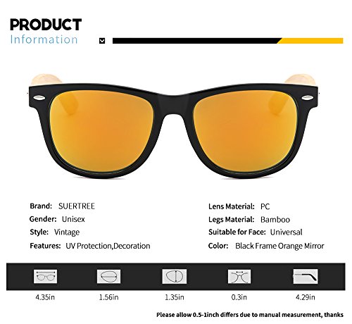 SUERTREE Bamboo Sunglasses Cute Women Men Vintage Shades Retro Summer Round UV 400 Protect Eyeglasses JH8001