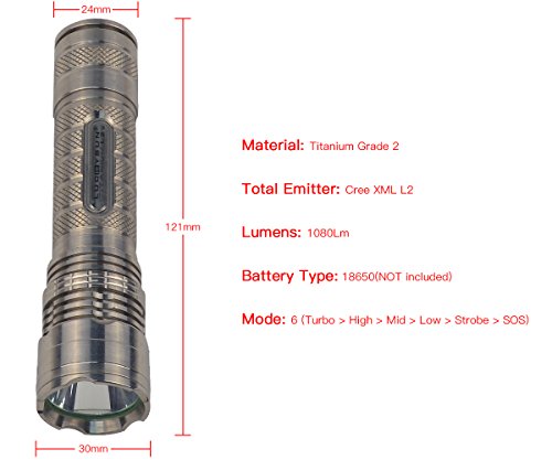 Luckysun Ti50 Titanium Flashlight 18650 1000lm 1A 6000K LED L2 Emergency Torch Light for Outdoor Activities