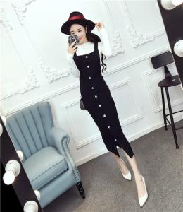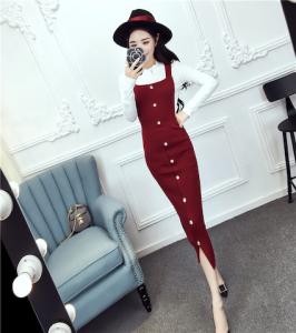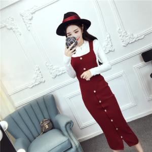 タイトワンピース フロントボタン タイトスカート サロペット プチプラセール 秋冬 AW 膝下 膝丈 フィット