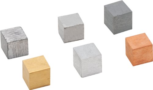 Density Cubes, Set of 6 Metals, 0.8" (20mm) sides - Brass, Lead, Iron, Copper, Aluminum, Zinc - For use with Density, Specific Gravity, Specific Heat Activities - Eisco Labs