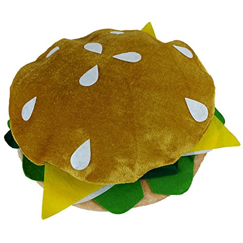 • Hold the Mayo! This 12 1/2" Round Brightly Colored Felt Hamburger Hat Has All the Fixings of a Great Burger